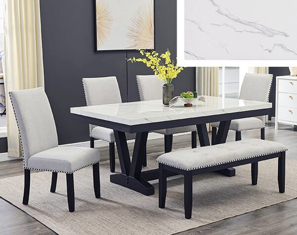 1420-6P VEGA FAUX MARBLE DINING GROUP