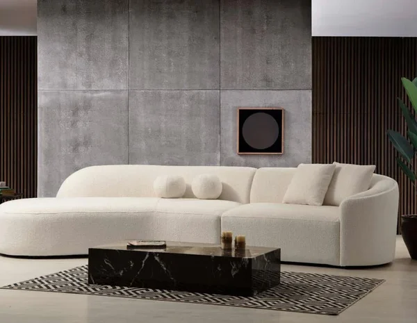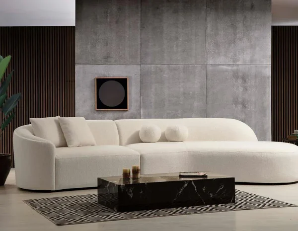 Cloe Ivory Boucle Curved 134" LAF Sectional