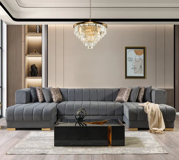 Angela Gray Velvet Sofa 91" & Loveseat 71"