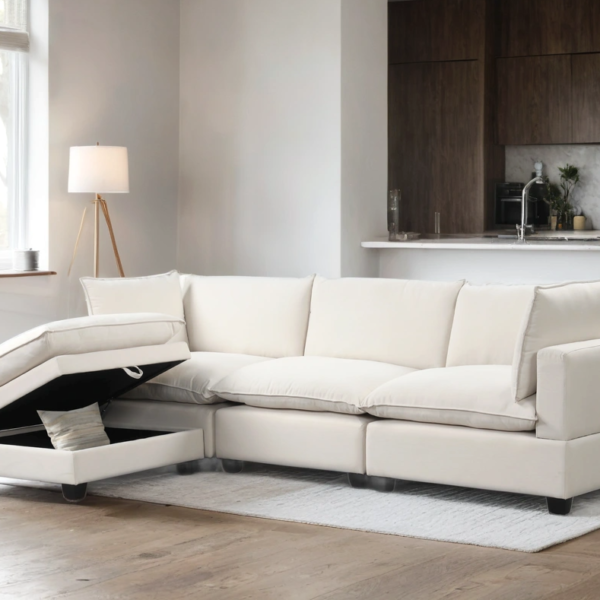 Bonita Ivory Boucle 3-Piece Curved 138"