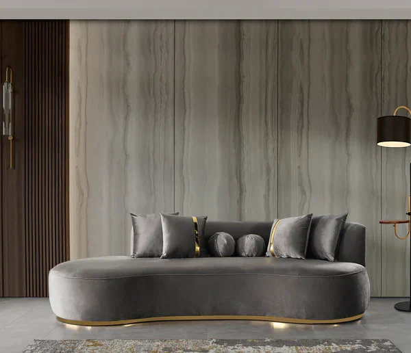 Ella Gray Velvet 106" Chaise Lounge
