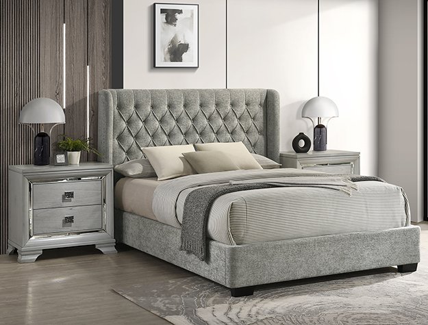 Experience the comfort and elegance of our modern upholstered bed frame, designed to bring a touch of luxury to your bedroom decor. With a stylish tufted headboard and a soft chenille fabric, this bed frame is perfect for contemporary homes looking for a blend of comfort and sophistication.