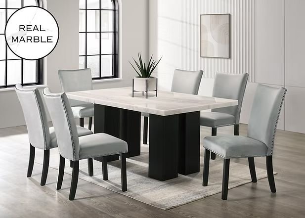 7pcs Dining Set (6 Chairs and Table), Bed, Nightstand, Mirror, Dresser., Bed, Nightstand, Mirror, Dresser, Storage Chest.
