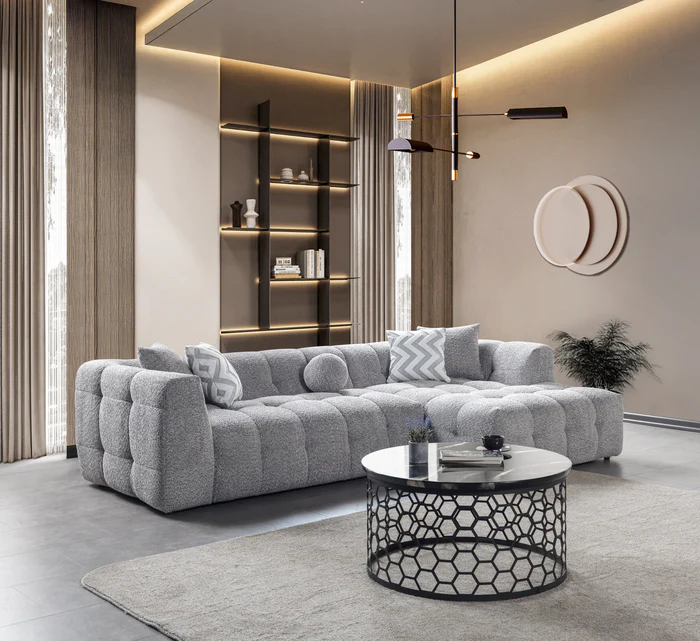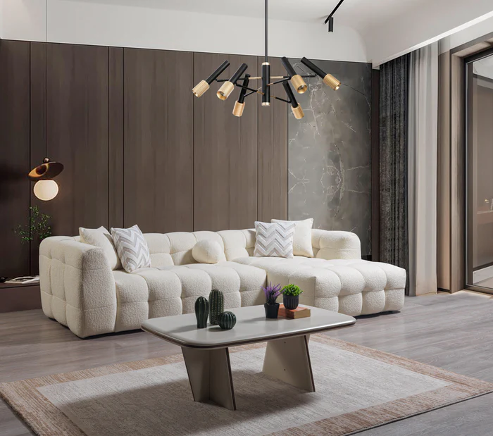 Luxurious and modern, our tufted Ivy Sectional combines cloud-like softness with contemporary elegance. The plush texture and geometric design make it a stylish and cozy centerpiece for any space. Its soft, cloud-like texture and modern design make it a standout centerpiece for any living space.
